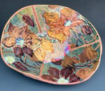 This hand-formed bowl has been re-constructed to create an interesting asymmetrical shape.